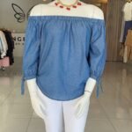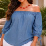 Luce un estilo relajado y sofisticado con esta blusa off shoulder confeccionada en tela tipo denim suave y ligera. Su diseño con hombros descubiertos resalta delicadamente la silueta, aportando un toque femenino y moderno. Las mangas 3/4 con detalle de lazo ajustable añaden un acabado encantador y versátil.