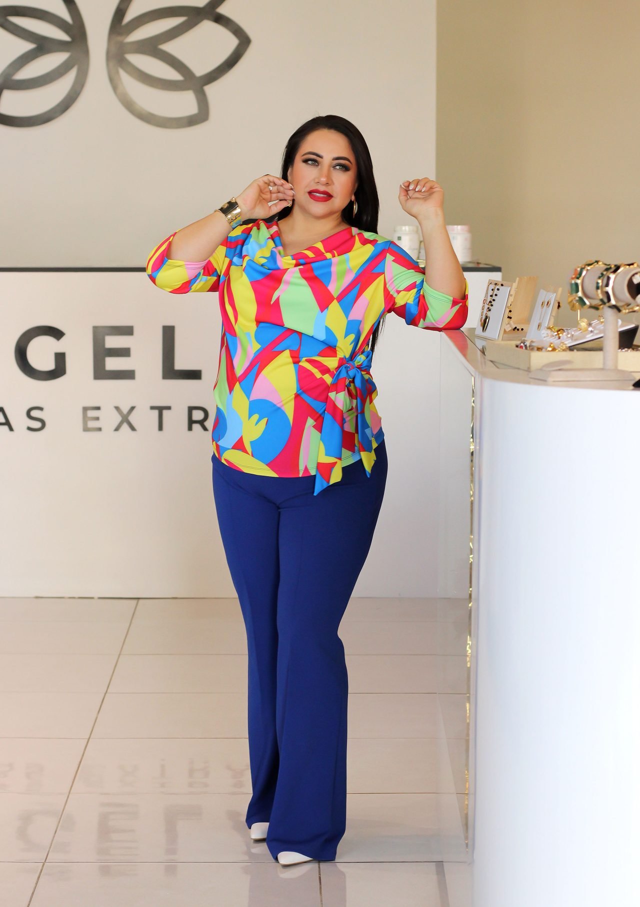 Pantalón cómodo y estilizado, con elástico en la cintura que se adapta perfectamente a tu figura sin apretar. Confeccionado en tela stretch, ofrece libertad de movimiento y una caída fluida que estiliza. Su diseño acampanado alarga visualmente las piernas y añade un toque moderno y favorecedor. Ideal para combinar tanto con blusas formales como con prendas casuales, este pantalón es una prenda clave para looks cómodos y con estilo.