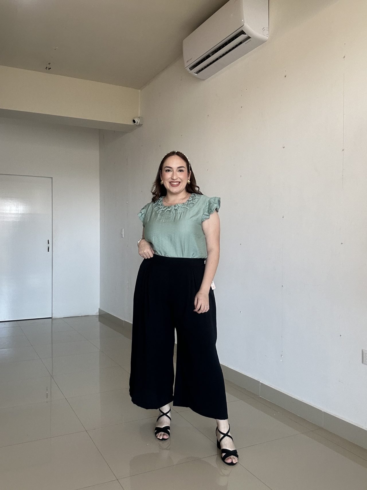 El tono negro clásico lo convierte en una pieza increíblemente versátil, fácil de combinar con blusas vibrantes para un toque de color, o con tonos neutros para un look sofisticado. Ya sea para un día de oficina, una salida casual o un evento especial, este culotte se convertirá en un básico indispensable en tu armario.