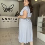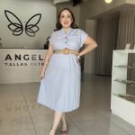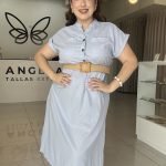 Descubre la comodidad y el estilo con nuestro vestido camisero midi en un refrescante tono azul claro. Confeccionado en un tejido ligero y transpirable, este diseño presenta un cuello camisero clásico y una botonadura frontal completa que se extiende hasta la cintura, permitiendo un ajuste versátil.