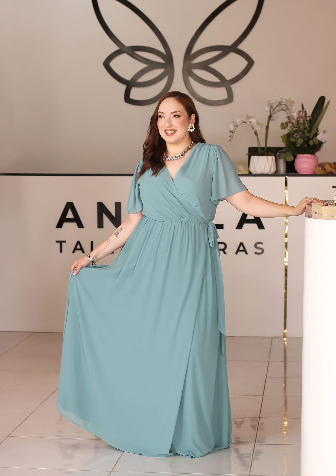 Este vestido largo azul combina elegancia y comodidad en una silueta atemporal. Su diseño fluido cae hasta el suelo con gracia, mientras que el listón ajustable en la cintura permite definir la figura con delicadeza. Ideal para ocasiones especiales, cenas formales o eventos al aire libre, su color sereno y corte favorecedor lo convierten en una pieza esencial para tu clóset.