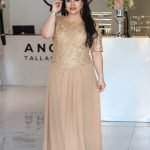 VESTIDO DE FIESTA CON ENCAJE DORADO 8290