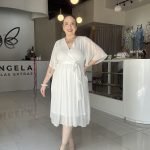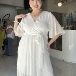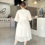 Descubre la elegancia y frescura de este vestido maxi en blanco puro. Diseñado con un favorecedor escote en V cruzado y delicadas mangas cortas tipo mariposa, su tejido ligero y fluido te envuelve con gracia. Incluye un liston ajustable para definir la cintura, creando una silueta estilizada y adaptable a cualquier ocasión.