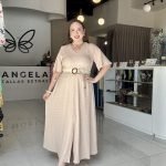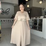 Este elegante vestido midi en un sofisticado tono beige ofrece una combinación perfecta de confort y estilo. Confeccionado en un tejido con una sutil textura, presenta un favorecedor cuello en V y mangas cortas de corte holgado para máxima comodidad. La silueta fluida se define con un cinturón ancho en un tono crema y hebilla redonda, creando una cintura marcada. Un detalle distintivo es su discreta abertura frontal que añade movimiento y modernidad. Ideal para ocasiones casuales o semi-formales, este vestido es una pieza versátil y chic para tu armario.
