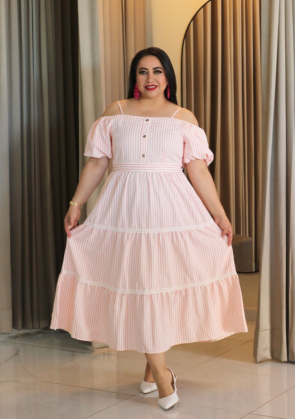 Vestido estilo campesino, con un encanto romántico y fresco. Tiene mangas bombachas que aportan volumen y movimiento, terminadas con elástico suave para un ajuste cómodo. En la parte del pecho, destacan botones decorativos que añaden un toque delicado y femenino. El vestido cae hasta media pierna y tiene un corte en “A”, lo que lo hace fluido, favorecedor y perfecto para distintas siluetas. Ideal para lucir relajada pero con estilo en días cálidos o salidas casuales.