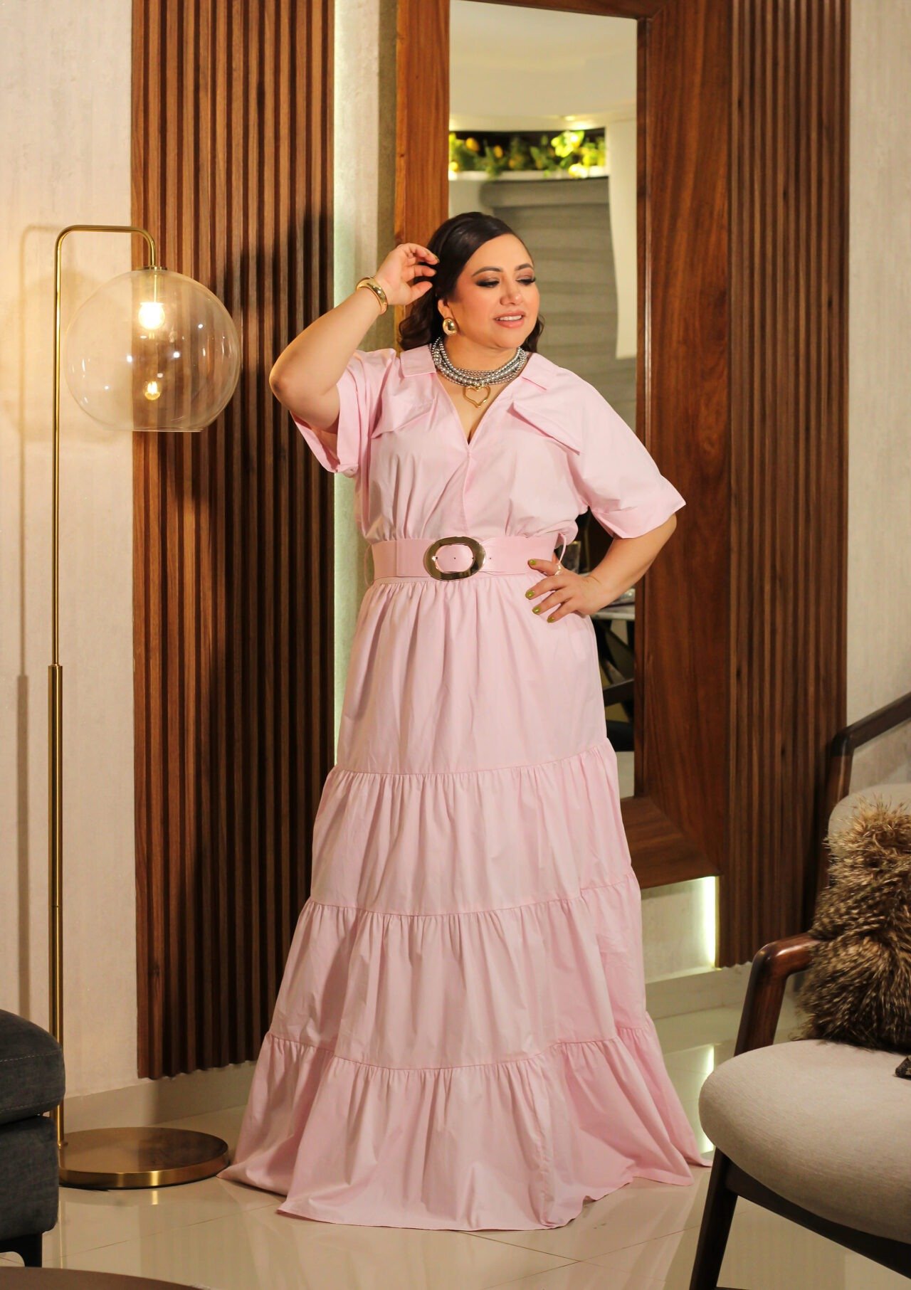 Elegancia y estilo en una sola prenda. Este vestido largo es la opción ideal para lucirte en cualquier ocasión. Confeccionado en una tela fluida que se adapta al cuerpo y aporta movimiento, incluye un cinto al tono que realza la silueta y marca la cintura de forma favorecedora. Su diseño atemporal lo convierte en un básico infaltable que podés usar tanto de día como de noche. ¡Sumale tus accesorios favoritos y estás lista!